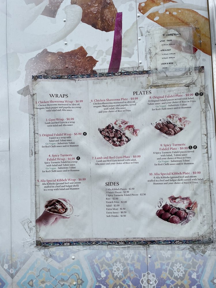 The menu is a delightful range of dishes that includes Kids' Chicken Shawarma and Gyro Plates, both highly praised for their generous portions and flavor. Vegetarian options like the Original Falafel Wrap shine, showcasing fresh ingredients and vibrant taste. Patrons rave about the fast and friendly service, making every visit enjoyable.